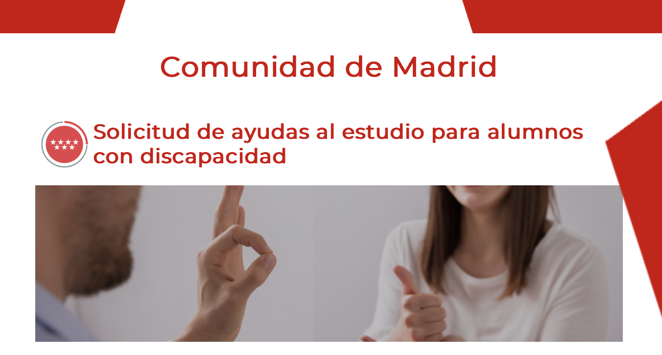 Informaros que hoy, 13 de abril, se ha publicado en el BOCM la convocatoria de Becas para estudiantes con Discapacidad (os adjunto el extracto de la Orden 1119/2026, de 28 de marzo). Toda la información está disponible en la web de la Comunidad de Madrid.El enlace para solicitar la beca es el siguiente:
