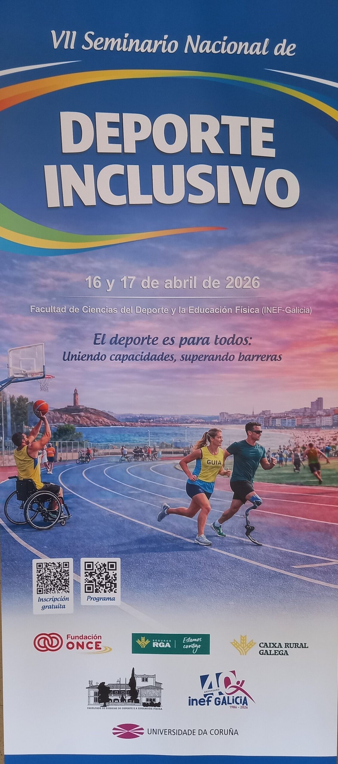 Os informamos que, siguiendo con nuestra apuesta por el fomento del deporte inclusivo, los próximos 16 y 17 de abril vamos a celebrar en la Universidad de A Coruña en colaboración con esta universidad, el VII Seminario Nacional de Deporte Inclusivo, bajo el lema “El deporte es para todos: uniendo capacidades, superando barreras”. El seminario pretende formar y sensibilizar a los futuros profesionales de la actividad física y deportiva y la comunidad universitaria en general, en el deporte adaptado e inclusivo, en consonancia, además, con lo establecido en la nueva ley orgánica de universidades.
