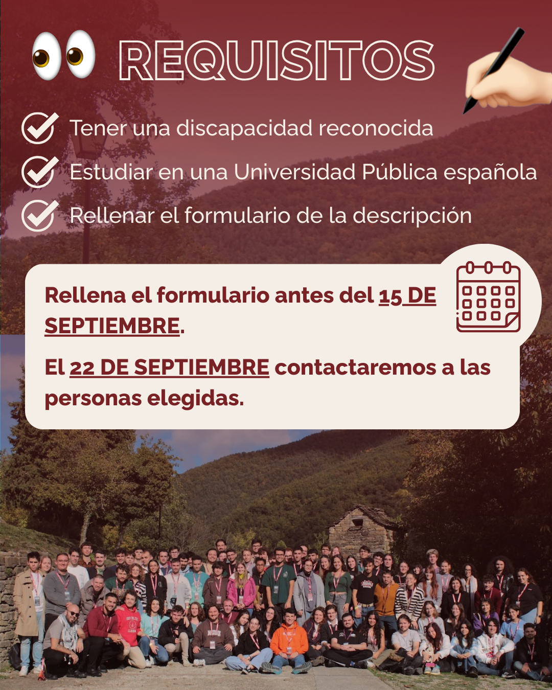 Si eres estudiante de una Universidad Pública y tienes una discapacidad reconocida de más del 33%, ¡RELLENA EL FORMULARIO Y PODRÁS SER UNA DE LAS 8 PERSONAS ELEGIDAS! 🏆