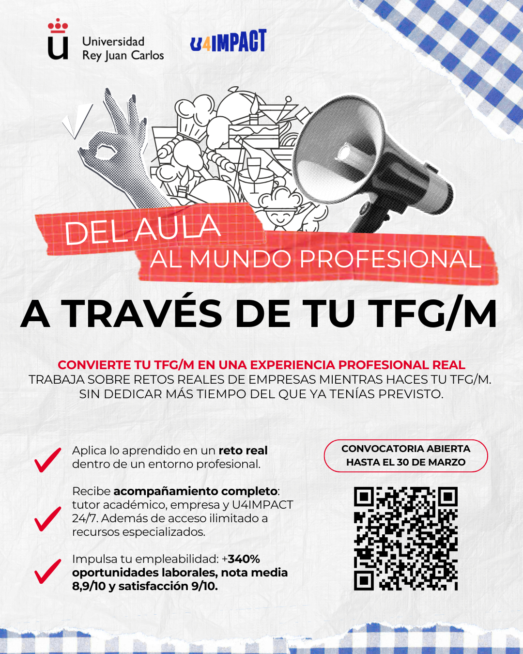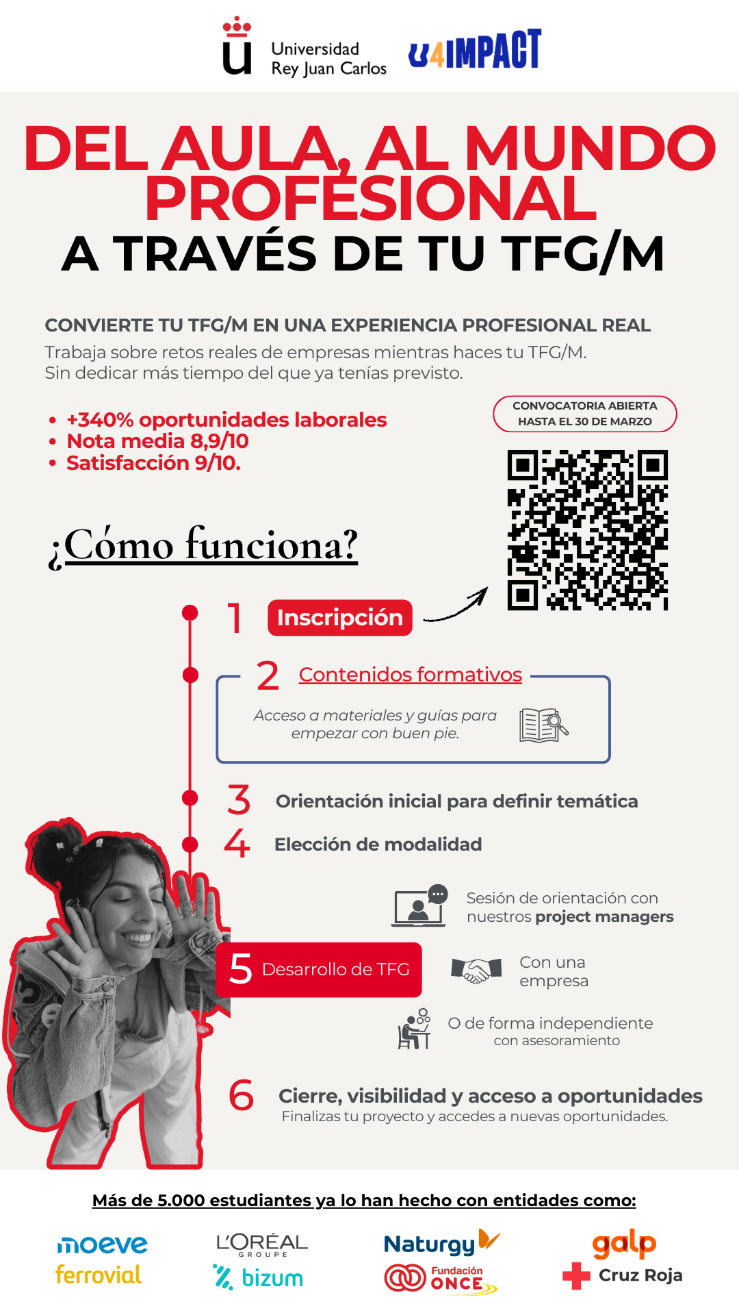 🎓 Tu TFG/M no es solo un requisito académico… ¡puede ser tu trampolín al mundo laboral!Con U4IMPACT desarrollarás tu proyecto con empresas y ONGs reales 🚀, acompañado por tutores y profesionales que te guiarán en todo momento.
